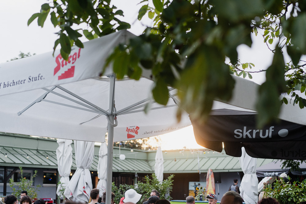 Sollte das Wetter einmal nicht ganz mitspielen, stehen im Außenbereich Gastgartenschirme sowie überdachte Bereiche bei den Sitzstiegen zur Verfügung.